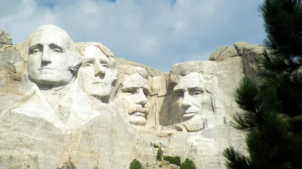 The epic 5,725-foot tall monument features the 60-foot granite carved faces of the four United States presidents of George Washington, Thomas Jefferson, Theodore Roosevelt and Abraham Lincoln. Mount Rushmore National Memorial was sculpted by Gutzon Borglum and his son Lincoln Borglum between 1927-39 and the idea was thought up by historian Doane Robinson to bring tourists to the Black Hills area of South Dakota. The concept worked as the national landmark on 1,278 acres is visited by almost three million people every year. Nearby related attractions include Lincoln Borglum Visitor Center, Presidential Trail and the Sculptor's Studio.