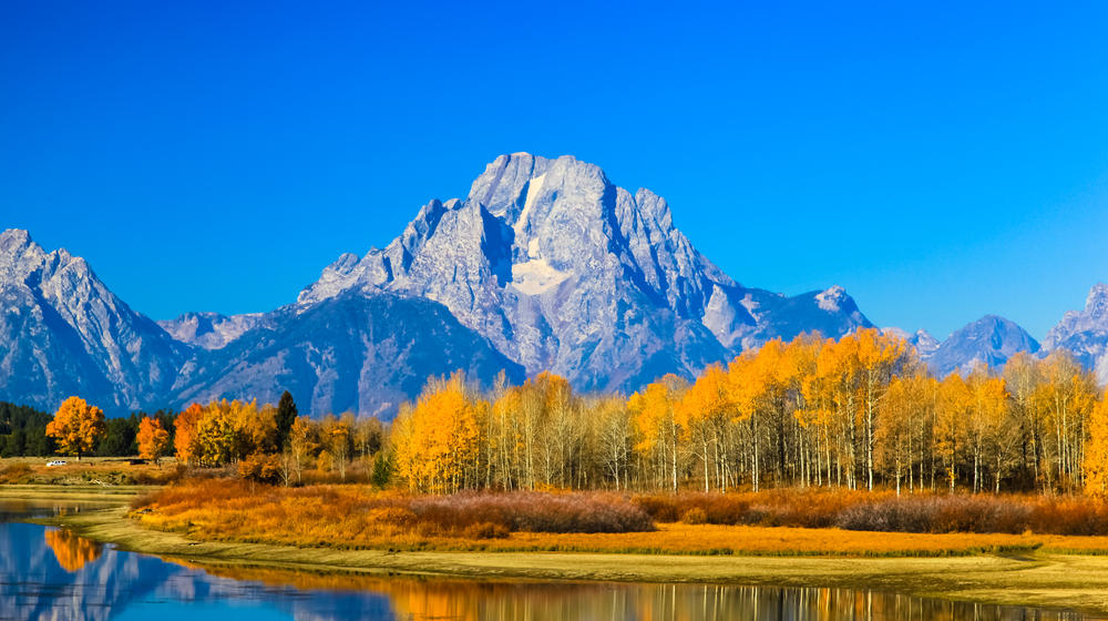Grand Teton National Park (90 munities), established on February 26, 1929, was named after the highest peak of the Teton Mountains. The park has an almost pristine ecosystem, with some prehistoric animals and plants still surviving here. The oldest stone is confirmed to be from 2.7 billion years ago. The lakes, rivers, and snow-capped mountains, led by Jackson Lake and Jenny Lake, together make up a peaceful world south of Yellowstone. In addition, Grand Teton National Park has an extremely rich wildlife, including American bison, grizzly bears, black bears, elk, and more.