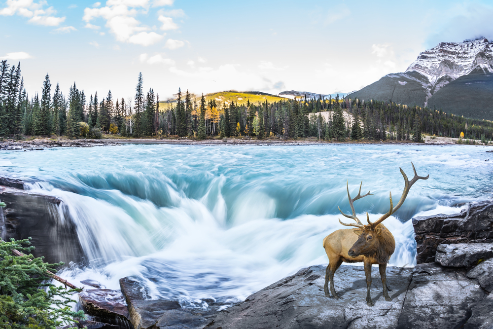 Today's journey begins with a visit to Jasper National Park, one of Canada's renowned alpine national parks and the largest in the Canadian Rockies. This stunning landscape, rich in wildlife, and a UNESCO World Heritage site, is a UNESCO World Heritage site. We'll then enter the Rocky Mountain National Park complex and reach Athabasca Falls. While not the highest waterfall in the Rockies, the interplay of rivers makes it one of the most powerful and spectacular. We'll continue along the Icefields Parkway to the Columbia Glacier. Take a giant snowmobile to the 300- meter-deep Athabasca Glacier and experience firsthand the remains of the Second Ice Age. Next, we'll visit the 280- meter-high Glacier Glass Bridge, a glass bridge overlooking the Columbia Icefield, offering a close-up glimpse of one of the world's most unique ecosystems. We'll then visit Peyto Lake, where the waters of this glacial lake are tinged with a Tiffany blue hue due to mineral deposits at the bottom. This jewel-like, shimmering water, nestled peacefully amidst the surrounding mountains, promises a truly spectacular viewing experience. We'll arrive in Banff in the evening.